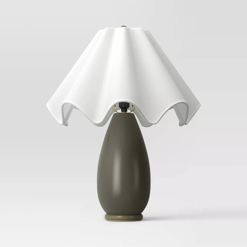 Create a delightful setting for any occasion with the Wavy Shade Collection with Ceramic Base Table Lamp. This green table lamp features a white wavy shade and round ceramic base for an appealing look. It’s designed with a three-way light setting on an in-line (cord) rotary switch to help you adjust the light according to your needs.